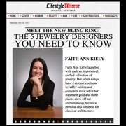 Faith Ann Kiely Corinthium Ball Pendant Elite Traveler Magazine September 2013 Faith Ann Kiely Aquilum Winged Sword Pendant W Magazine September 2013 Trends Supplement Faith Ann Kiely National Jeweler Magazine Silver Interview Faith Ann Kiely LifeStyle Mirror Magazine July 2013 Designers You Need to Know